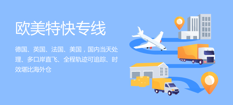 欧美特快专线服务是八星自主研发快线渠道服务,是直飞德国、英国、法国、美国的空运专线渠道,通过高效库内操作,整合国内和香港的优质直飞航班,搭配本土的优质派送服务商,时效快至 4 天可完成妥投。适合对时效有特殊要求的 Ebay、沃尔玛、亚马逊等卖家(可只提供尾程信息),时效媲美海外仓!
